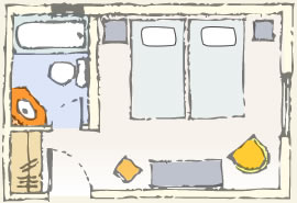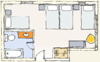 a total of 46 passengers in single, double, triple, and quadruple rooms.