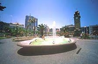(downtown center), with the Plaza Colon surrounded by big old trees.